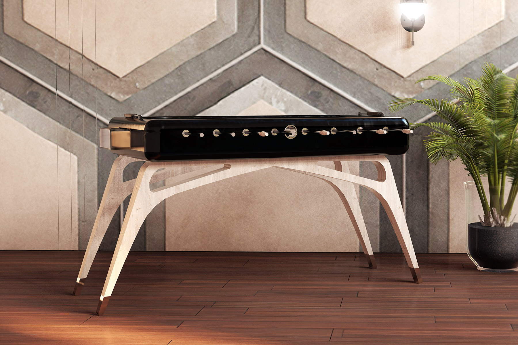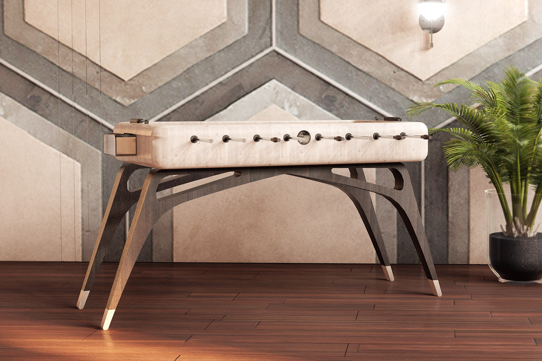‘’The Butterfly Foosball Table’’ from ‘’The Butterfly Series’’ ,great combination of soft detailed stainless steel and massive wood, is created as an impressive technique.